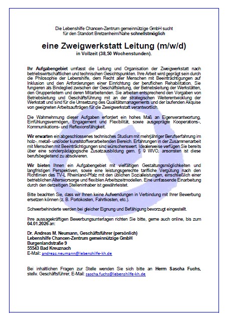 Aktuell Mitgliederversammlung der LAG WfbM RLP wählt neuen Vorstand Marco Dobrani und Ferdinand Niesen als langjährige Vorstandsmitglieder verabschiedet Neue Schulungs-Termine für Frauenbeauftragte und Werkstatt-Räte